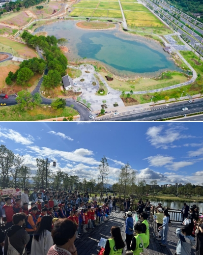 龍州濕地是九龍江流域山水林田湖草沙一體化保護和修復項目海綿城市建設范例工程,也是我市2023年十大重點(diǎn)攻堅項目北部新城建設的“點(diǎn)睛之筆”,主要使用的是國家政策補助資金。項目占地面積約20公頃,通過(guò)“護山、理水、營(yíng)林、興田、清湖、豐草”六大舉措,構建了蓄洪湖區、生態(tài)修復區、農田區及休閑區多樣用地,同時(shí),設置了蓄洪湖、濕地步道、山谷攔蓄、引水工程等海綿設施,實(shí)現“城在田中田在城中”山水田園與城市和諧共生的美好景象。