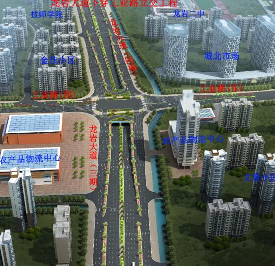 龍巖大道工業(yè)路下穿通道項目位于龍巖大道與工業(yè)路交叉口,為現狀龍巖大道三期道路上設置下穿通道,起始于規劃支路農產(chǎn)品物流配送中心路口,終止于龍巖大道四期龍巖第一技師學(xué)院東側,全長(cháng)383米,其中框架涵長(cháng)度80米,U型槽長(cháng)度303米,地道凈寬2×13米,雙向六車(chē)道。主通道兩側設置兩道南北向人行地下通道,人行通道斷面型式:5×3.5米,主通道長(cháng)124米,梯道長(cháng)128米,總投資約2億元。
