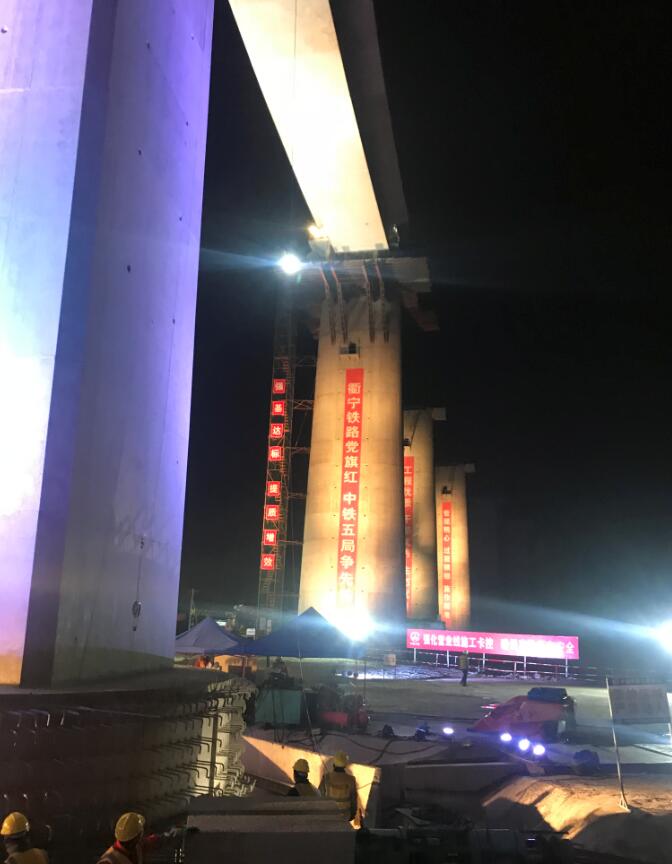 11日晚22:00,現場(chǎng)總指揮一聲令下轉體開(kāi)始,T構按照1°/分鐘的速度勻速轉動(dòng),轉體行程剩余30cm時(shí),橋上觀(guān)測人員先對橋梁的水平標高進(jìn)行觀(guān)測,通知下方人員進(jìn)行水平調整,再對中線(xiàn)觀(guān)測,最后的30cm采用點(diǎn)動(dòng),避免過(guò)轉確保中軸線(xiàn)誤差不超過(guò)設計要求,橋身轉體實(shí)現“華麗轉身”,共歷時(shí)約70分。